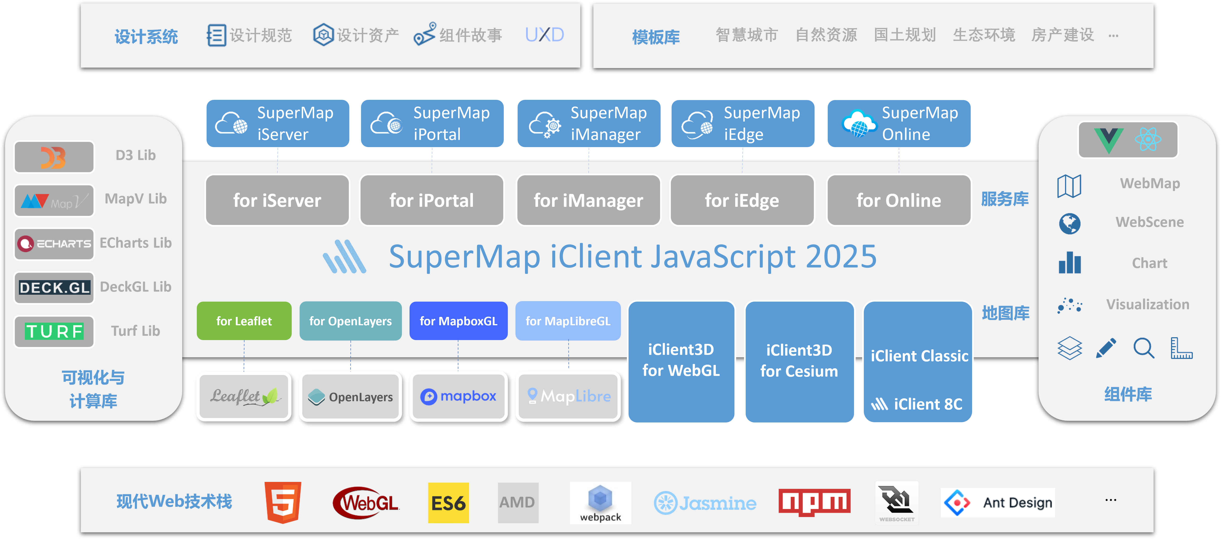 本章介绍 SuperMap iClient JavaScript 2025 的各地图基础库所支持的主要功能和服务。