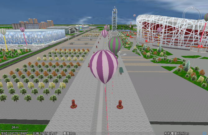 除以上静态的模型数据外,SuperMap 三维服务支持发布动画模型数据,用以展示动态效果。动画模型技术的重要意义在于使得三维场景中的模型对象运动起来,人们可以通过动画获取对象的动态视觉效果。动画模型技术应用在 GIS 产品中,使得地理信息系统的视觉体验更加趋向于真实。通过对动画模型的观察,使用者能够获取模型各个部位的动作信息,而不再只是静态的图像。SuperMap GIS 对动画模型技术的实现,主要体现在对第三方动画模型的支持上。通过将第三方的动画模型文件导入,用户可以控制动画的播放,从而实现在三维场景中展现出动态的对象。SuperMap iServer 目前支持在3D Max9 软件中通过插件把动画模型转为 scv 格式,然后在 SuperMap iDesktop 中将 scv 格式的模型动画数据加载在三维场景中后进行发布,客户端可以对模型动画数据进行浏览。