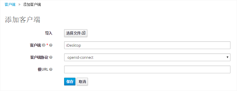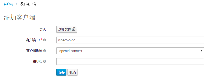 - 客户端 ID:输入“客户端 ID”,这个“客户端 ID"您可以随意命名,例如:ispeco-oidc。需要注意的是,这个"客户端 ID”与在 SuperMap iServer/iPortal/iEdge 中的“Keycloak 登录配置”的“客户端 ID”一致。