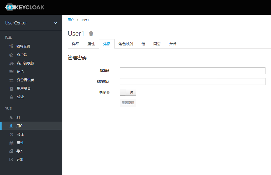 添加完角色后,您就可以进行创建用户操作。Keycloak 允许直接由管理员添加用户与开放用户注册两种方式进行用户的添加。