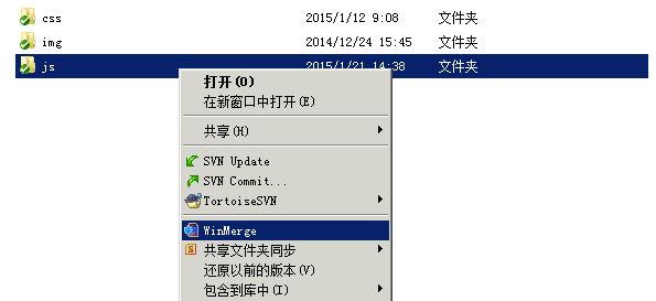 - 安装好 WinMerge 后,选中要比较的一个文件夹右键点击 WinMerge。