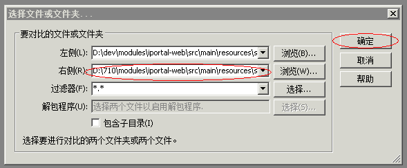 - 在弹出的对话框中填写另外一个要比较的目录,并点击确定。