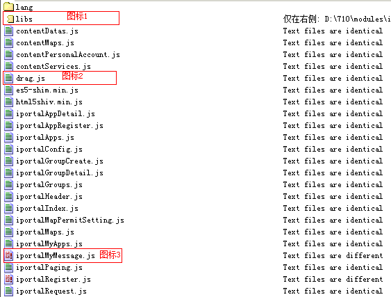 - 图标3:表示比较的两个文件夹中都有该文件,但是该文件的具体内容不一致