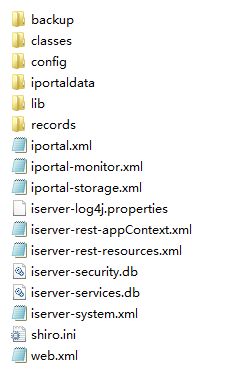 - iportaldata 文件夹:存放 iPortal 的数据库文件