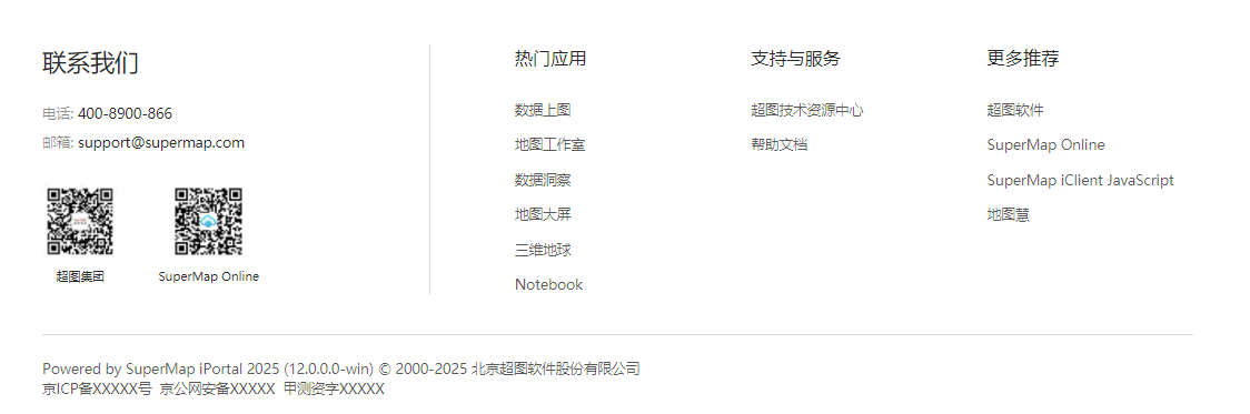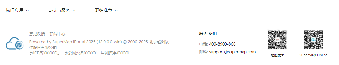 iPortal 默认 footer 采用单行布局模式,适合较为简洁的门户站点搭建。