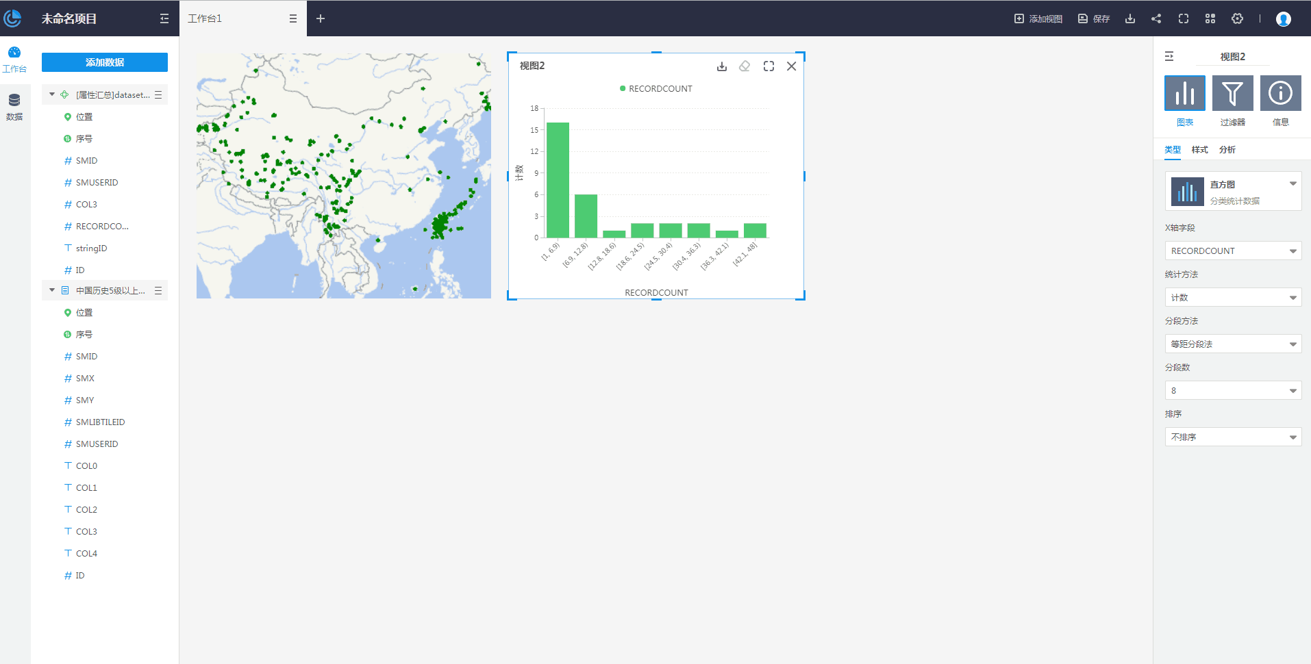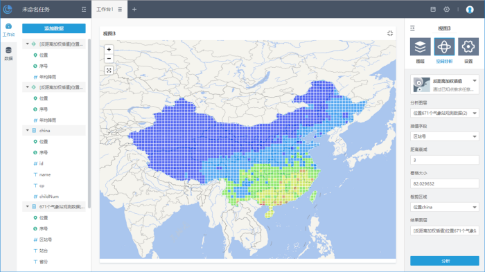 数据洞察支持对视图中的地图进行空间分析以进一步提取和挖掘空间信息价值;支持接入数据科学服务的能力,将 Notebook 运行生成的图片、图表、文本、iFrame 等分析结果以视图卡片的形式添加到工作台。