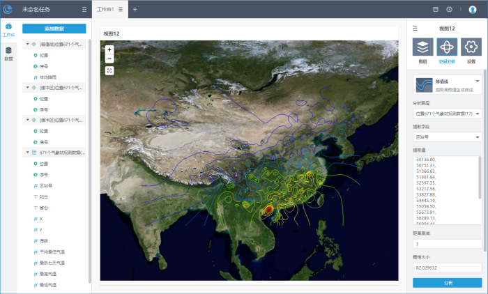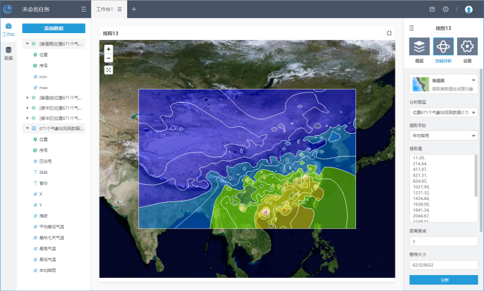- 分析图层:用于提取等值线的图层,默认为第一个图层,仅支持点图层