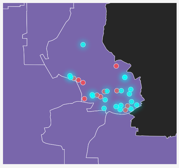 如果图表组件和地图组件间含有相同的数据或组件间的数据可以通过某一字段进行关联,可以实现图表统计结果与地图联动。比如选中统计后的图表中的某一分组数据,该分组内的要素将在地图中高亮显示。