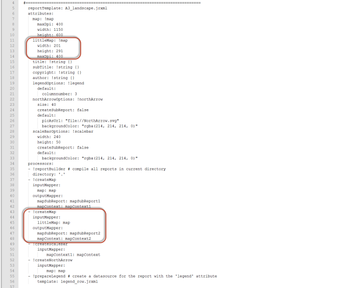 - A4_landscape.jrxml 文件:布局模板文件,包含地图标题、指北针、图例、比例尺、地图作者信息、地图版权信息以及小地图等布局元素,可以在 Jaspersoft Studio 软件中进行调整。