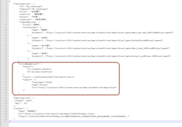 完成以上1、2、3步修改后,重启 iServer,然后将4步不带小地图的请求体发送给iServer Web打印服务后,输出的地图文档就没有小地图了。