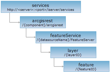 http://supermapiserver:8090/iserver/services/{datasourceName}/FeatureServer/{layerID}/{featureID}.json