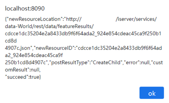 3.Click createFeatureResults to run the SQL query, a message box will pop up and display detailed information about the data query operation.
